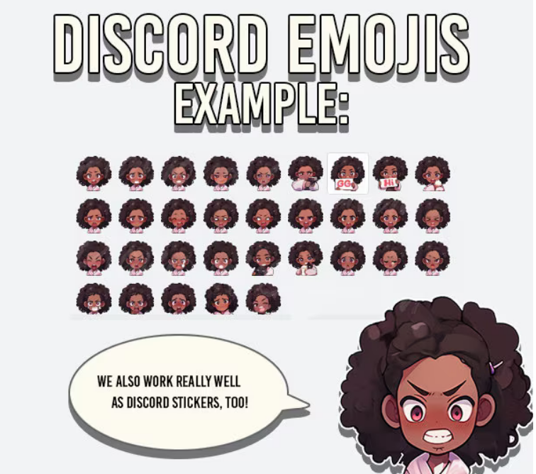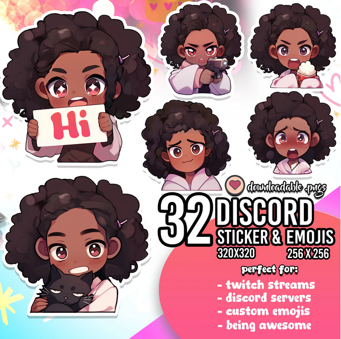 Cute Chibi Afro Girl Discord Emotes | Lofi Of Color Emoji Pack